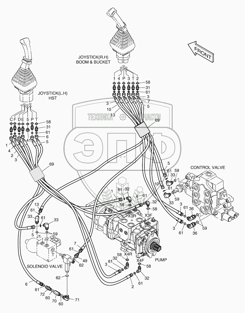 Каталог запасных частей к технике: Doosan Мини-погрузчик 470 Plus. 6460 Трубопроводы управления
