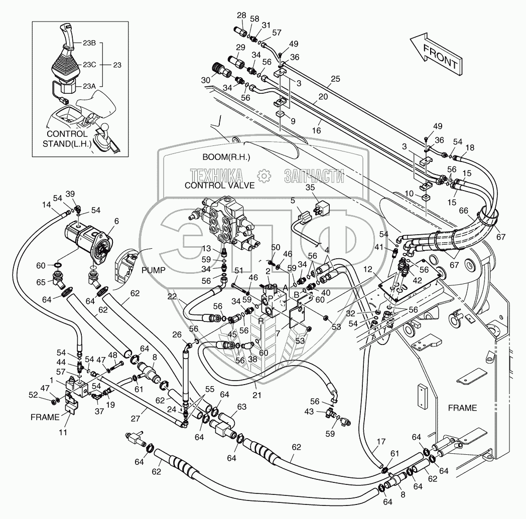Каталог запасных частей к технике: Doosan Мини-погрузчик 470 Plus. 6490 Гидросистема