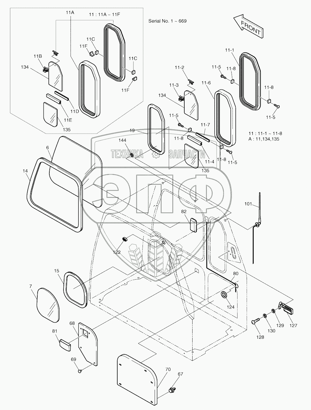 Каталог запасных частей к технике: Doosan SOLAR 130W-V(1). CABIN (3)