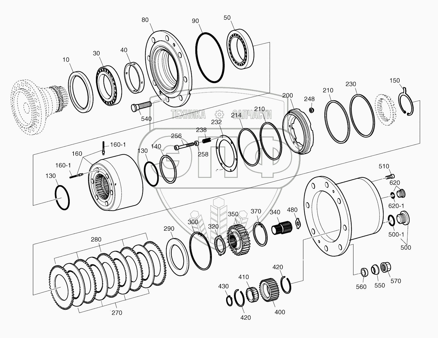 Каталог запасных частей к технике: Doosan SOLAR 130W-V(1). HUB-REAR AXLE
