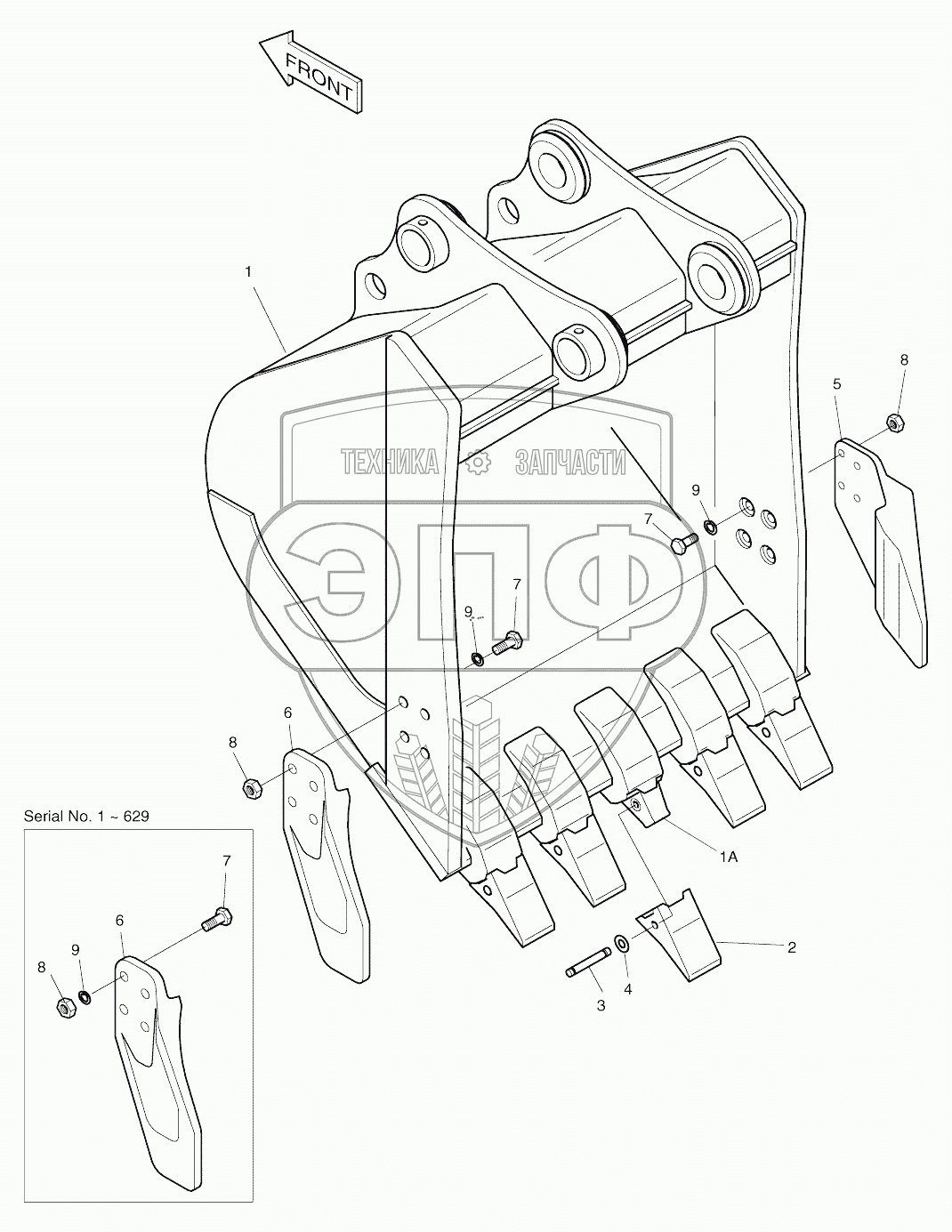 Каталог запасных частей к технике: Doosan SOLAR 130W-V(2). BUCKET-0.5M3