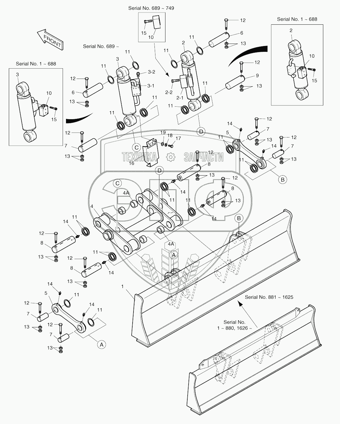 Каталог запасных частей к технике: Doosan SOLAR 130W-V(2). DOZER BLADE