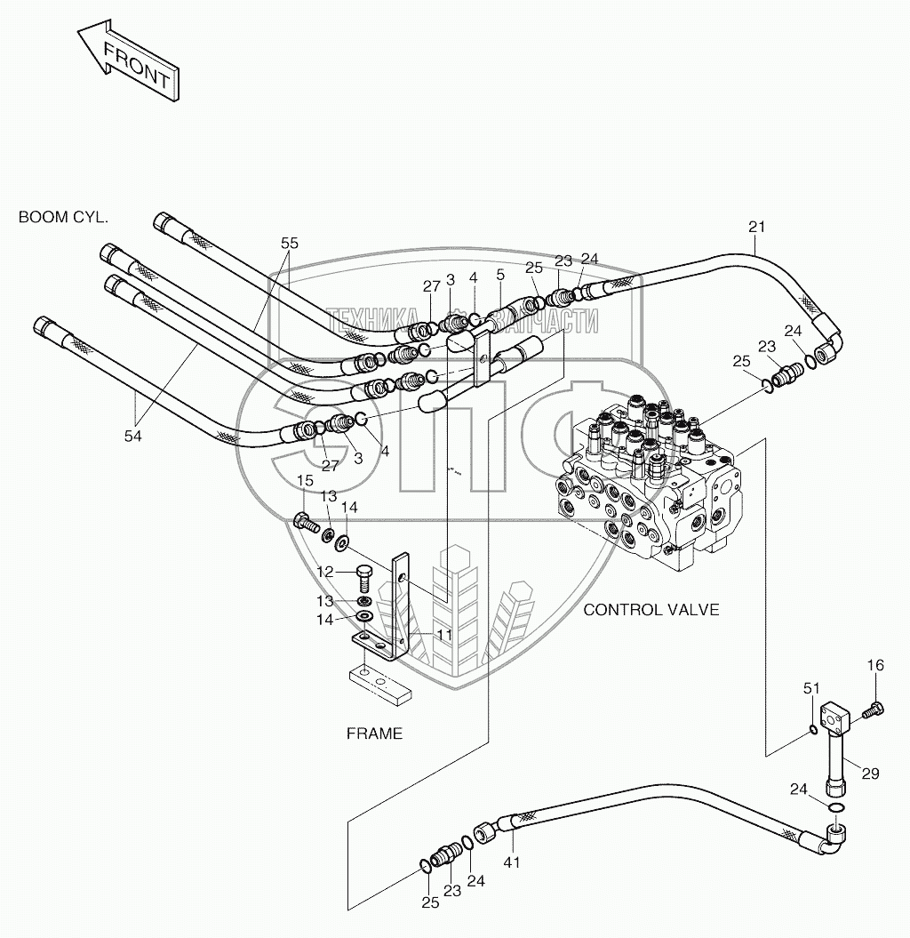 Каталог запасных частей к технике: Doosan SOLAR 140W-V. MAIN PIPING (4) - BOOM
