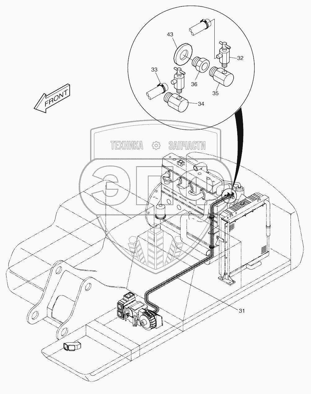 Каталог запасных частей к технике: Doosan SOLAR 170W-V. HEATER PIPING