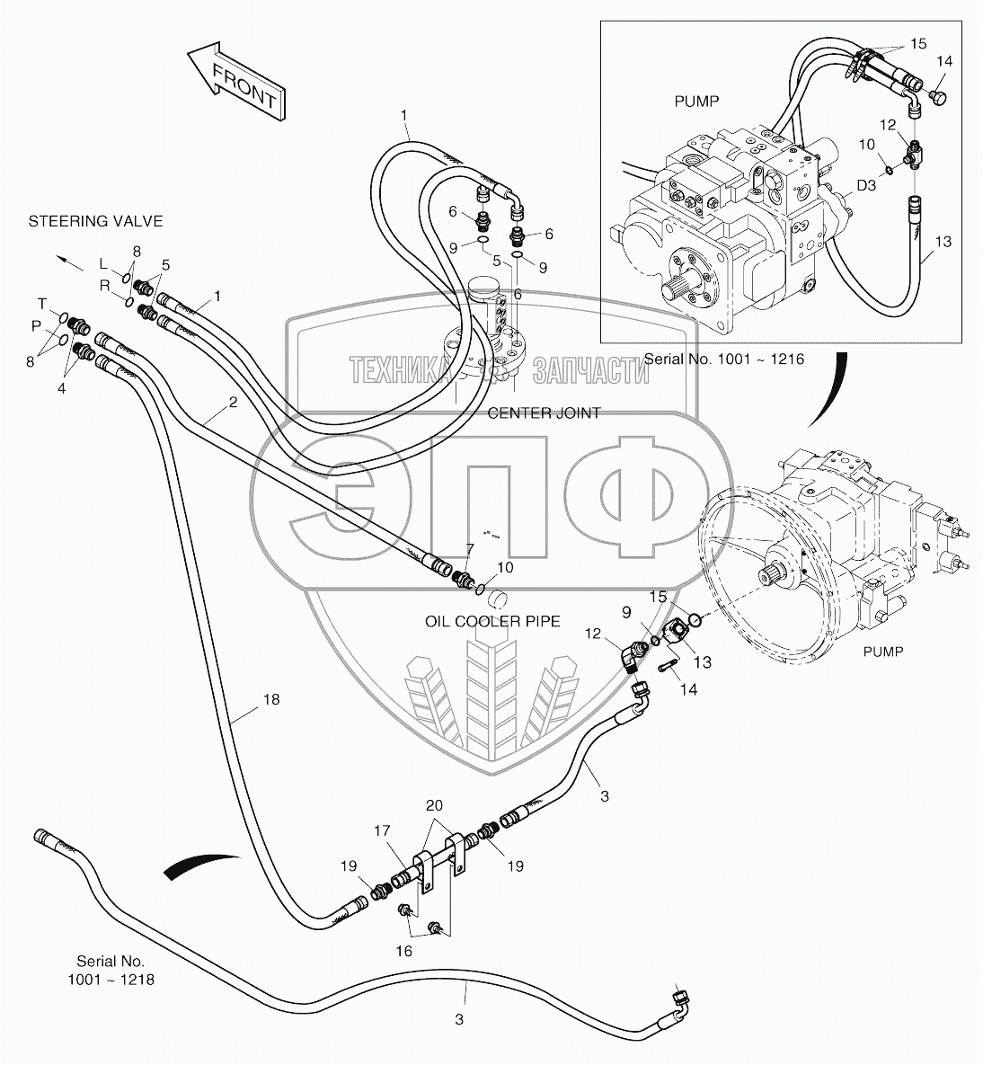 Каталог запасных частей к технике: Doosan SOLAR 170W-V. STEERING PIPING