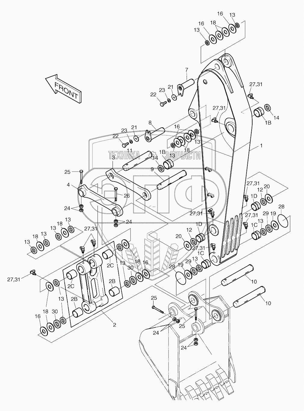 Каталог запасных частей к технике: Doosan SOLAR 210W-V. ARM ASSY-2.4m