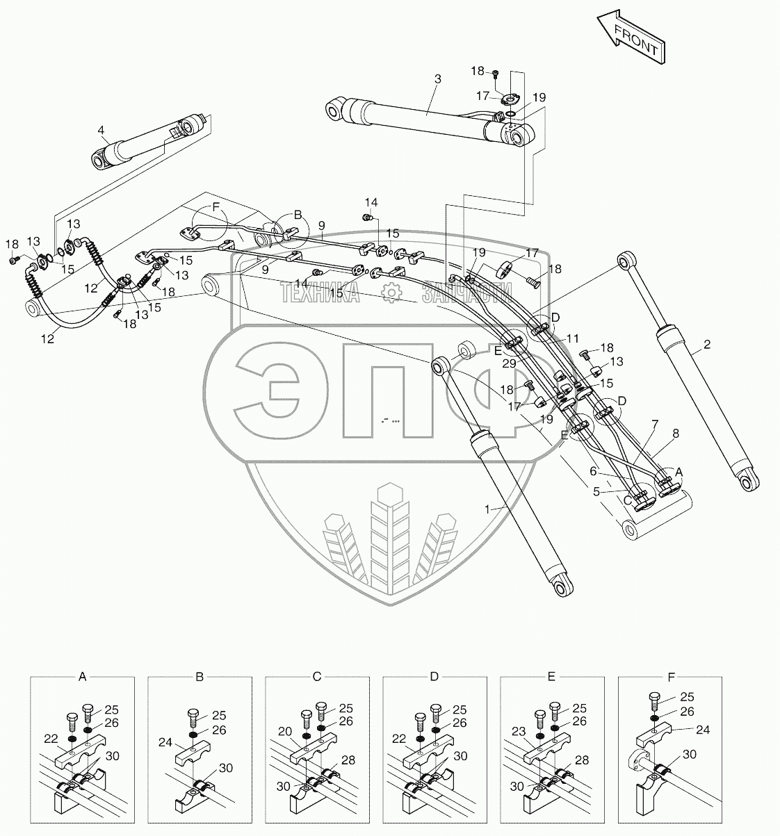 Каталог запасных частей к технике: Doosan SOLAR 210W-V. FRONT PIPING