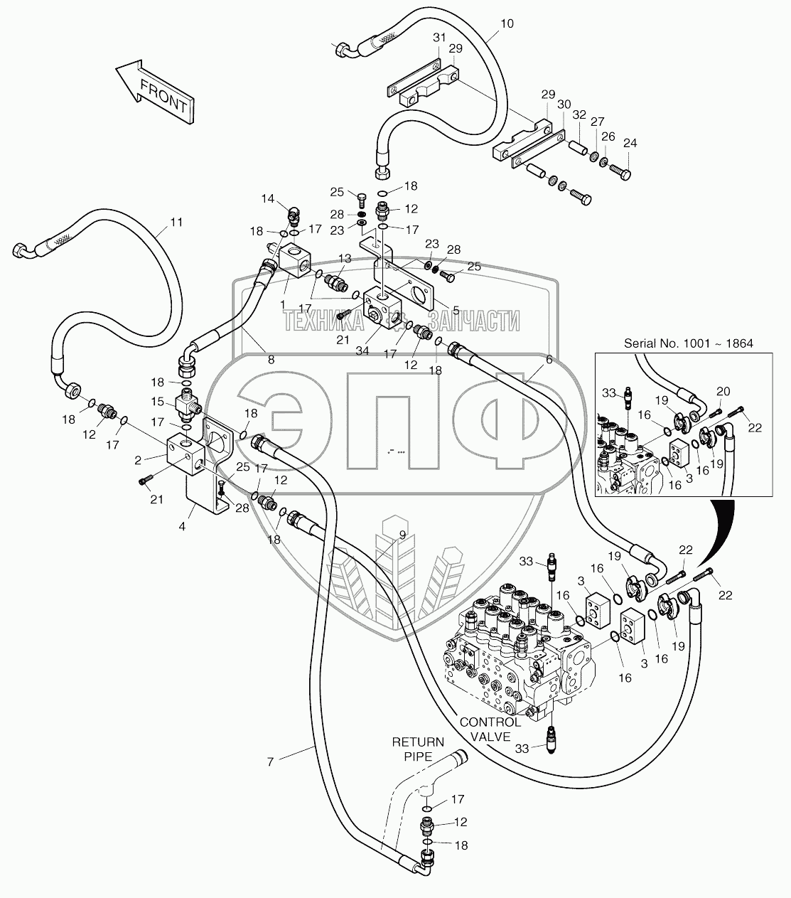Каталог запасных частей к технике: Doosan SOLAR 210W-V. MAIN PIPING-PE3C