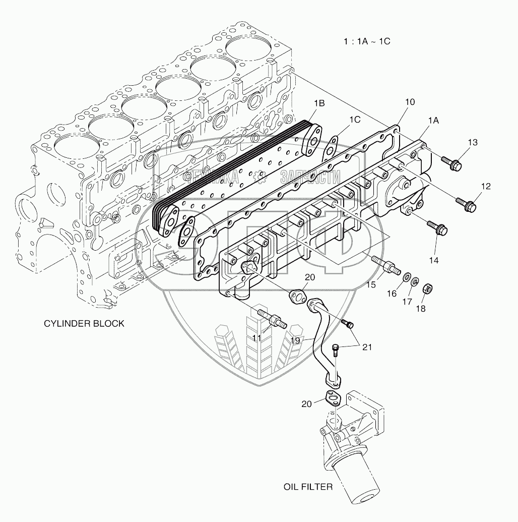 | 1A | 65.05604-0013B | Housing, oil cooler | Нет на складе | |