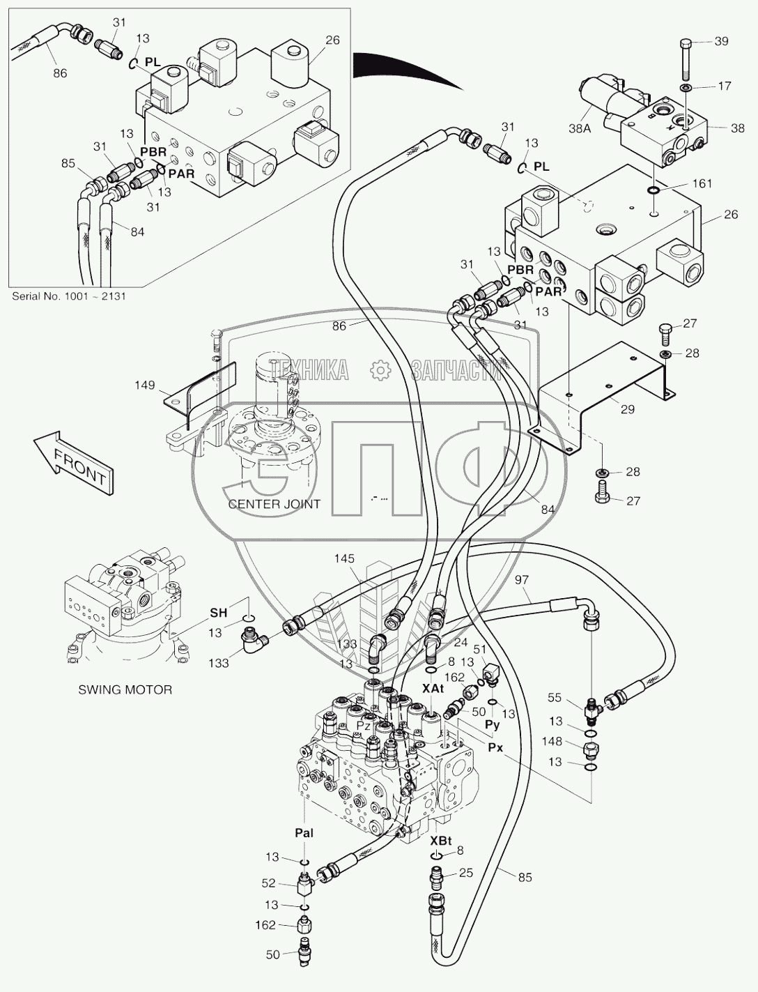 Каталог запасных частей к технике: Doosan SOLAR 210W-V. PILOT PIPING (9)