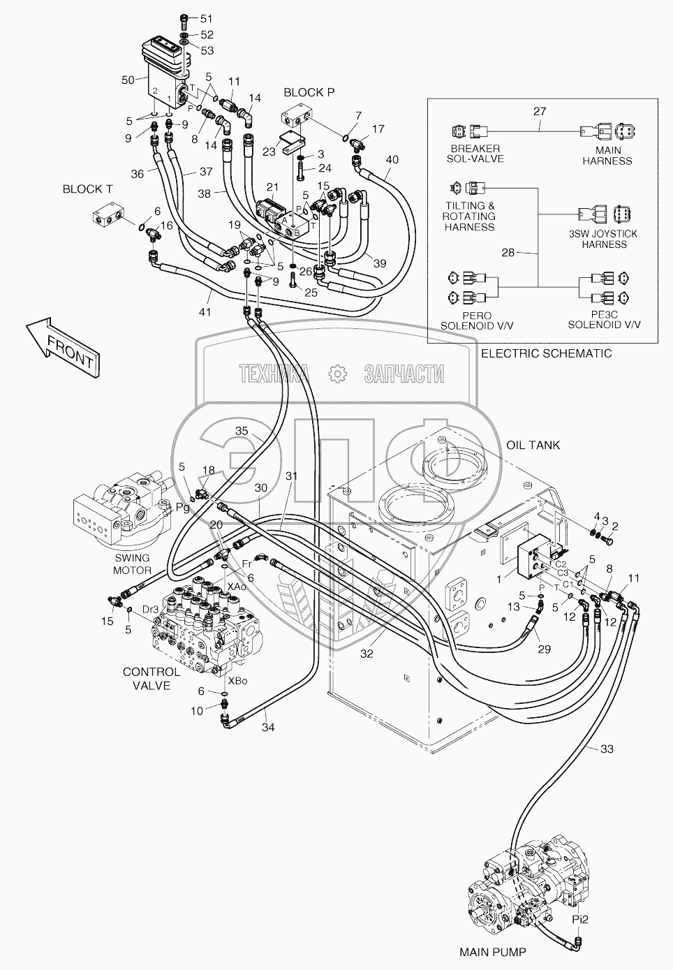 Каталог запасных частей к технике: Doosan SOLAR 210W-V. PILOT PIPING-PE3C