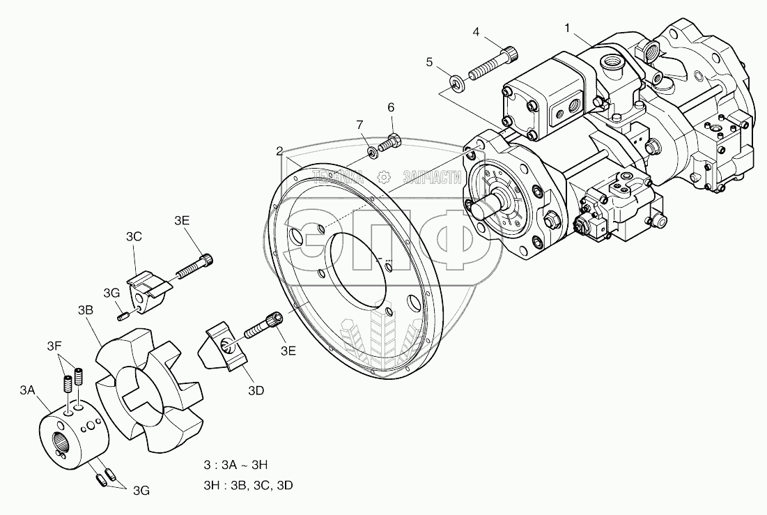 Каталог запасных частей к технике: Doosan SOLAR 210W-V. PUMP ASSY