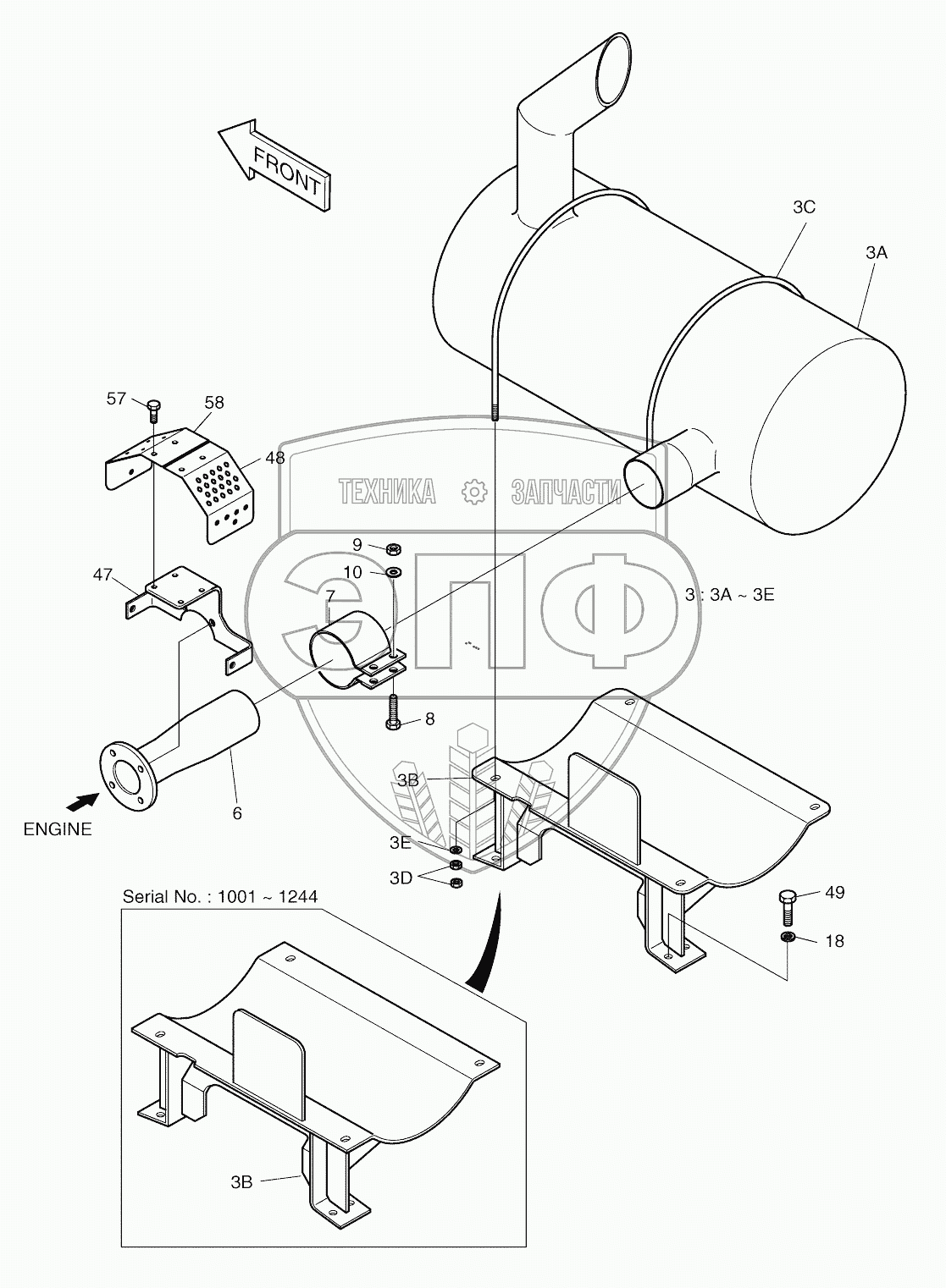 | 3B | 195-01955C | Bracket, muffler | Нет на складе | |