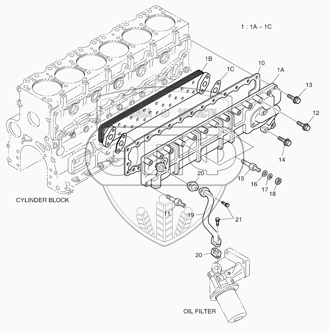 | 1A | 65.05604-0013A | Housing, oil cooler | Нет на складе | |