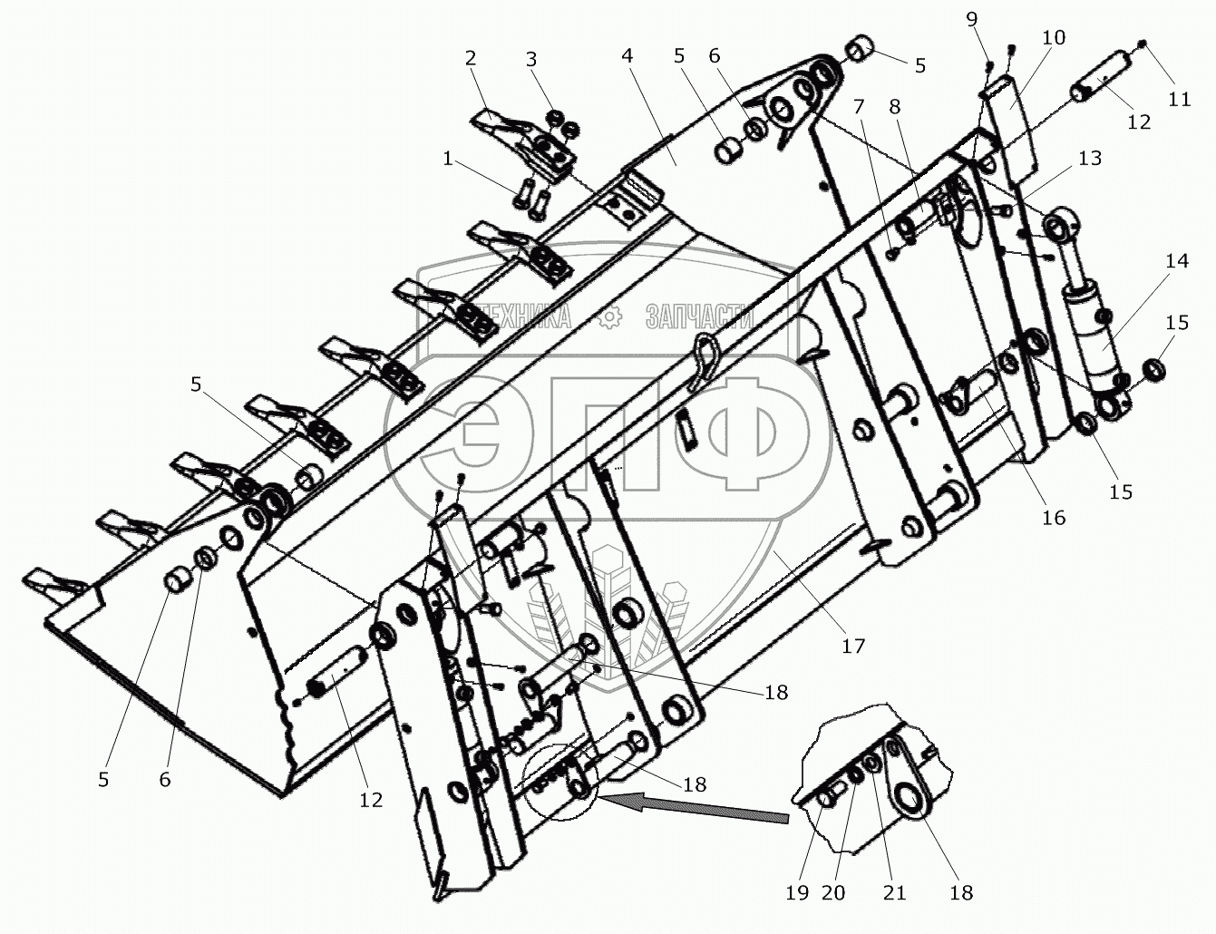 Каталог запасных частей к технике: Дорэлектромаш ДЭМ-114. Ковш с челюстным захватом