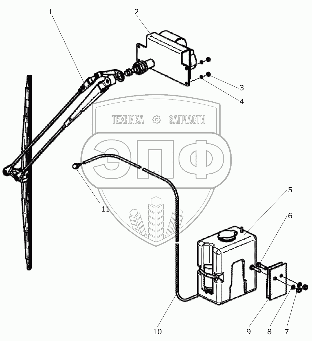 Каталог запасных частей к технике: Дорэлектромаш ДЭМ-114. Стеклоочиститель. Стеклоомыватель