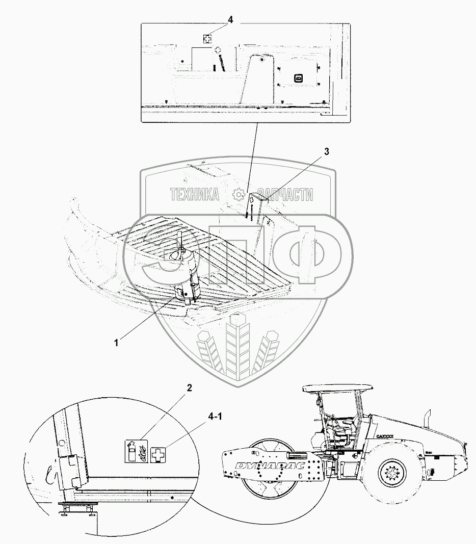 Каталог запасных частей к технике: DYNAPAC CA2500D. Fire extinguisher/First Aid Cushion