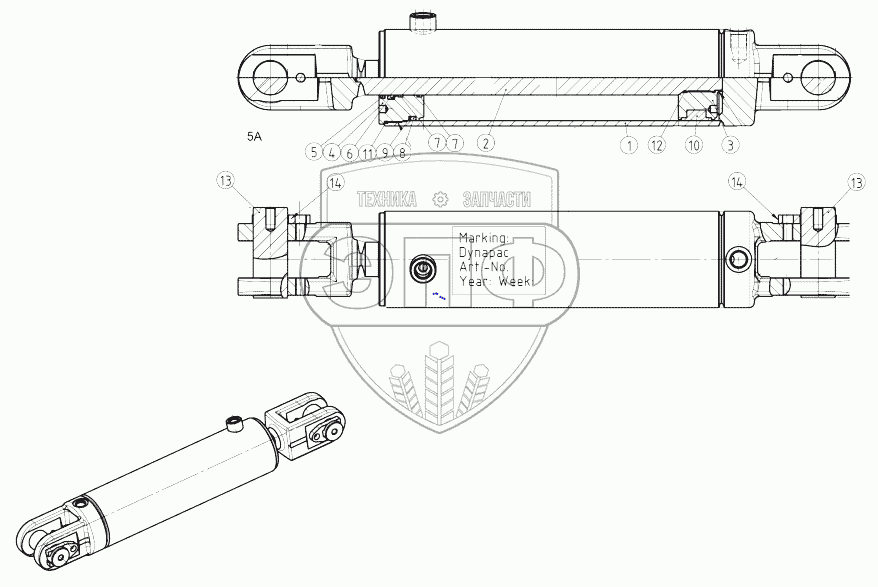 Каталог запасных частей к технике: DYNAPAC CA2500D. 4812121947 Hydraulic cylinder