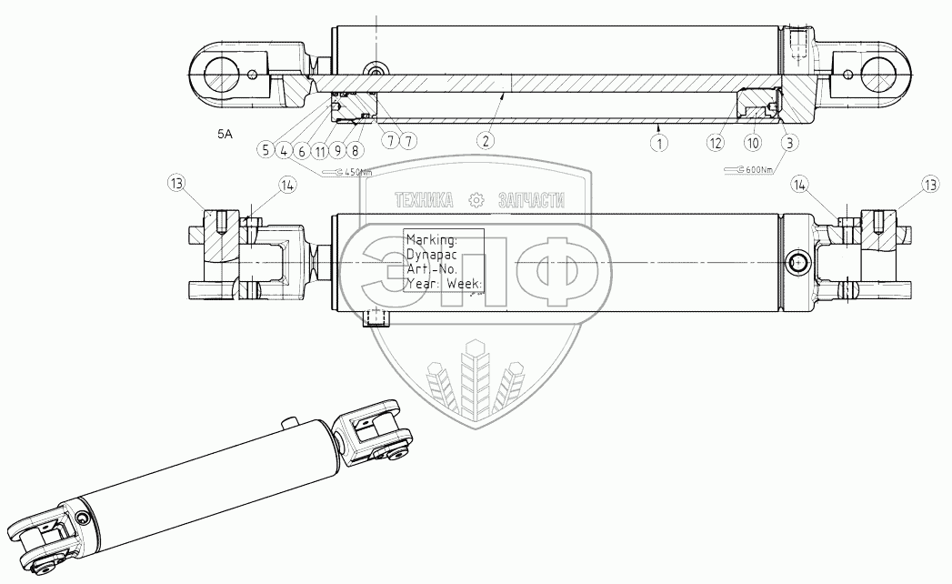 Каталог запасных частей к технике: DYNAPAC CA2500D-PD. 4812121948 Hydraulic cylinder