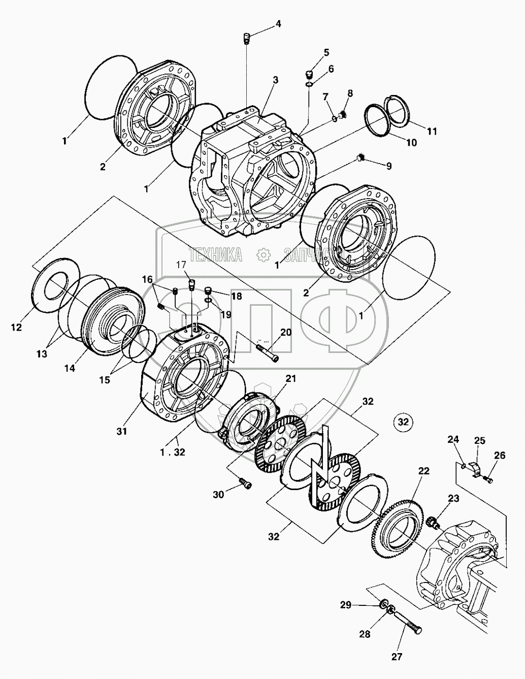 Каталог запасных частей к технике: DYNAPAC CA250D. Differential housing and brakes