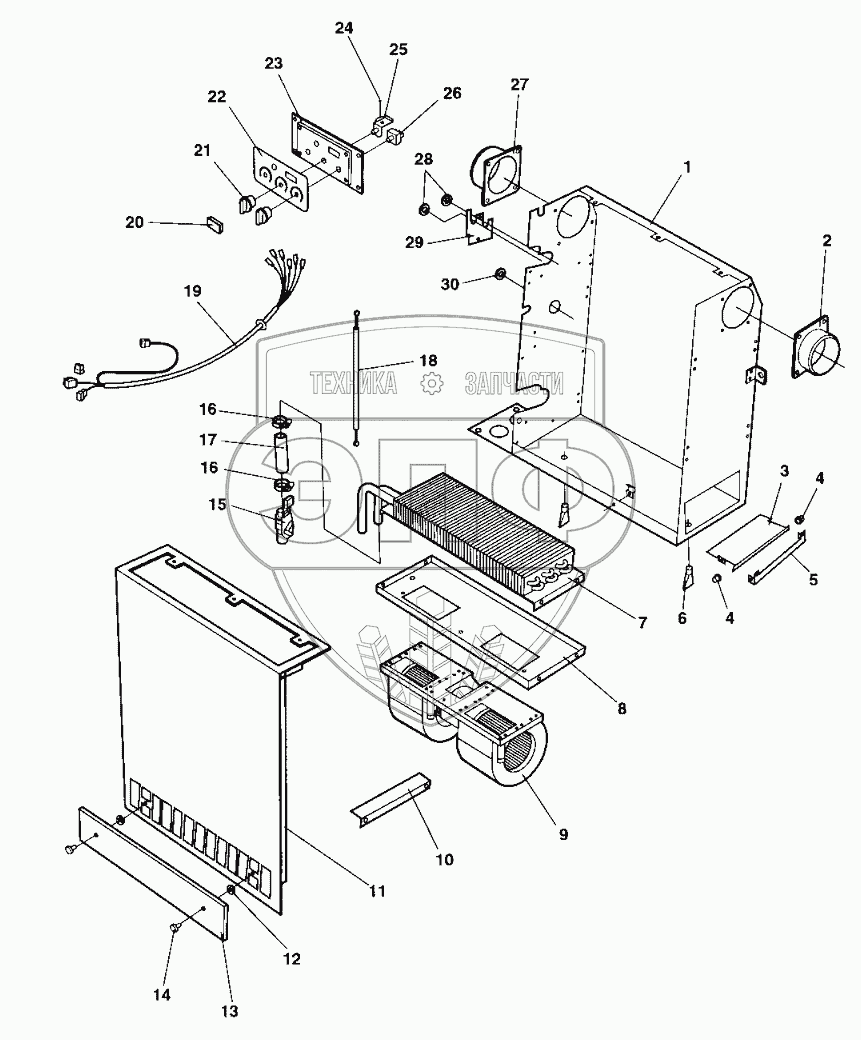 Каталог запасных частей к технике: DYNAPAC CA252D. 385434 Cab heater, cpl