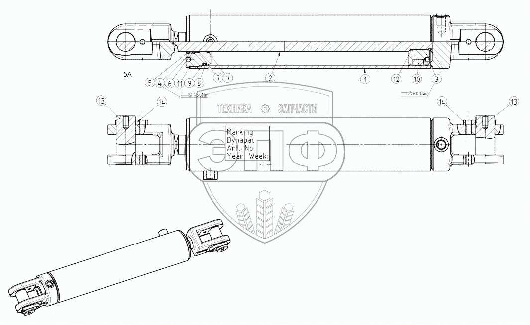 Каталог запасных частей к технике: DYNAPAC CA4000D. 4812121948 Hydraulic cylinder