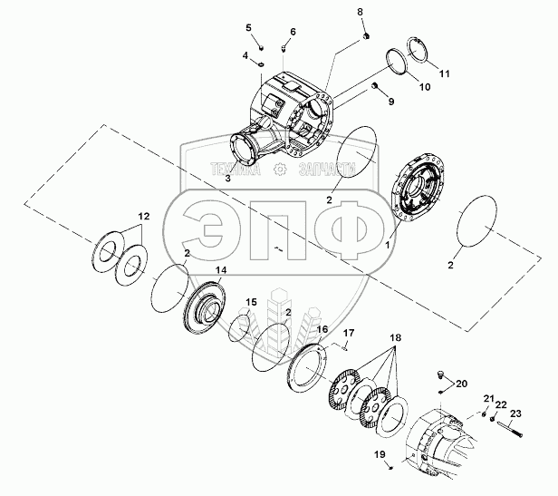 Каталог запасных частей к технике: DYNAPAC CA4000D. Central housing and brakes