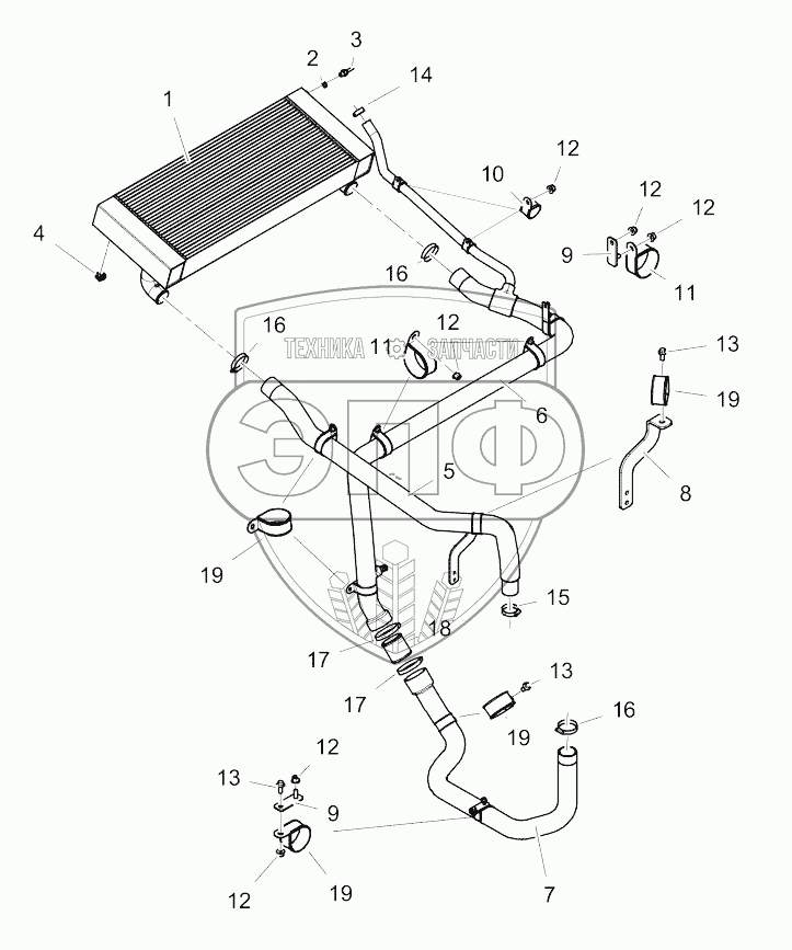 Каталог запасных частей к технике: DYNAPAC CA4000D. Water cooler and hoses