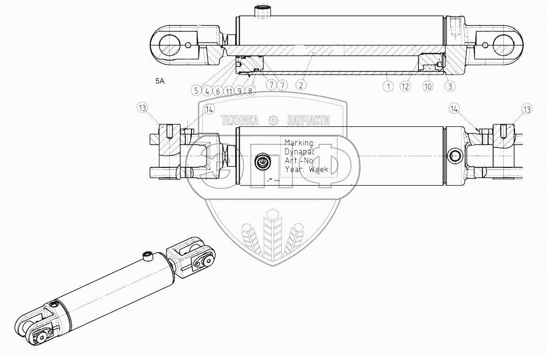 Каталог запасных частей к технике: DYNAPAC CA5500D. 4812121947 Hydraulic cylinder