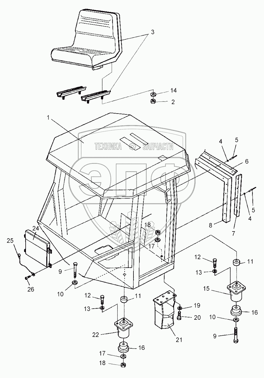 Каталог запасных частей к технике: DYNAPAC CA610PD. Cab mounting