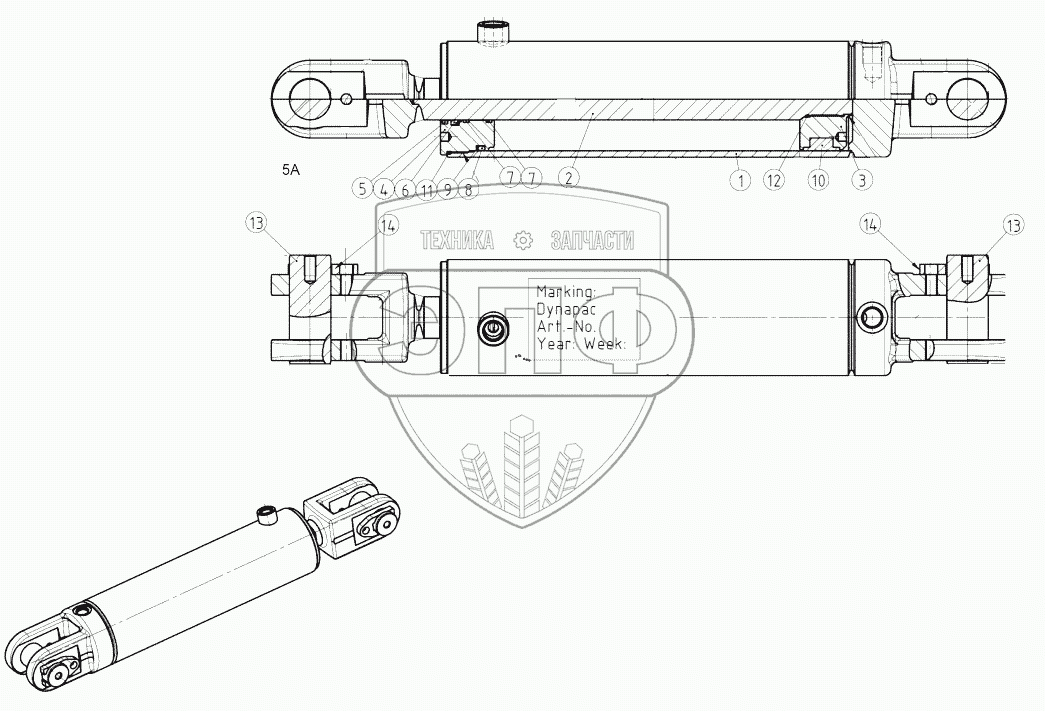 Каталог запасных частей к технике: DYNAPAC CA6500. 4812121947 Hydraulic cylinder