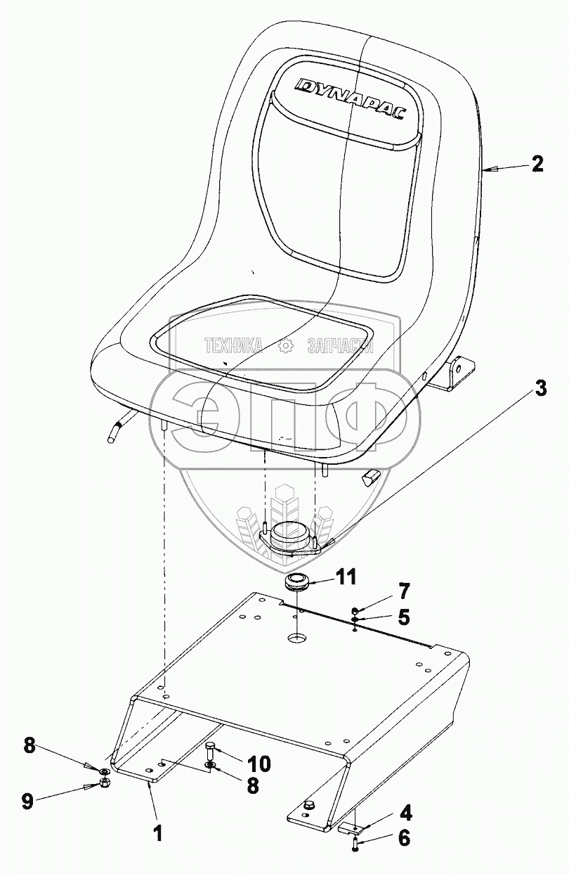 Каталог запасных частей к технике: DYNAPAC CC1200CC. Driver's seat, without armrests