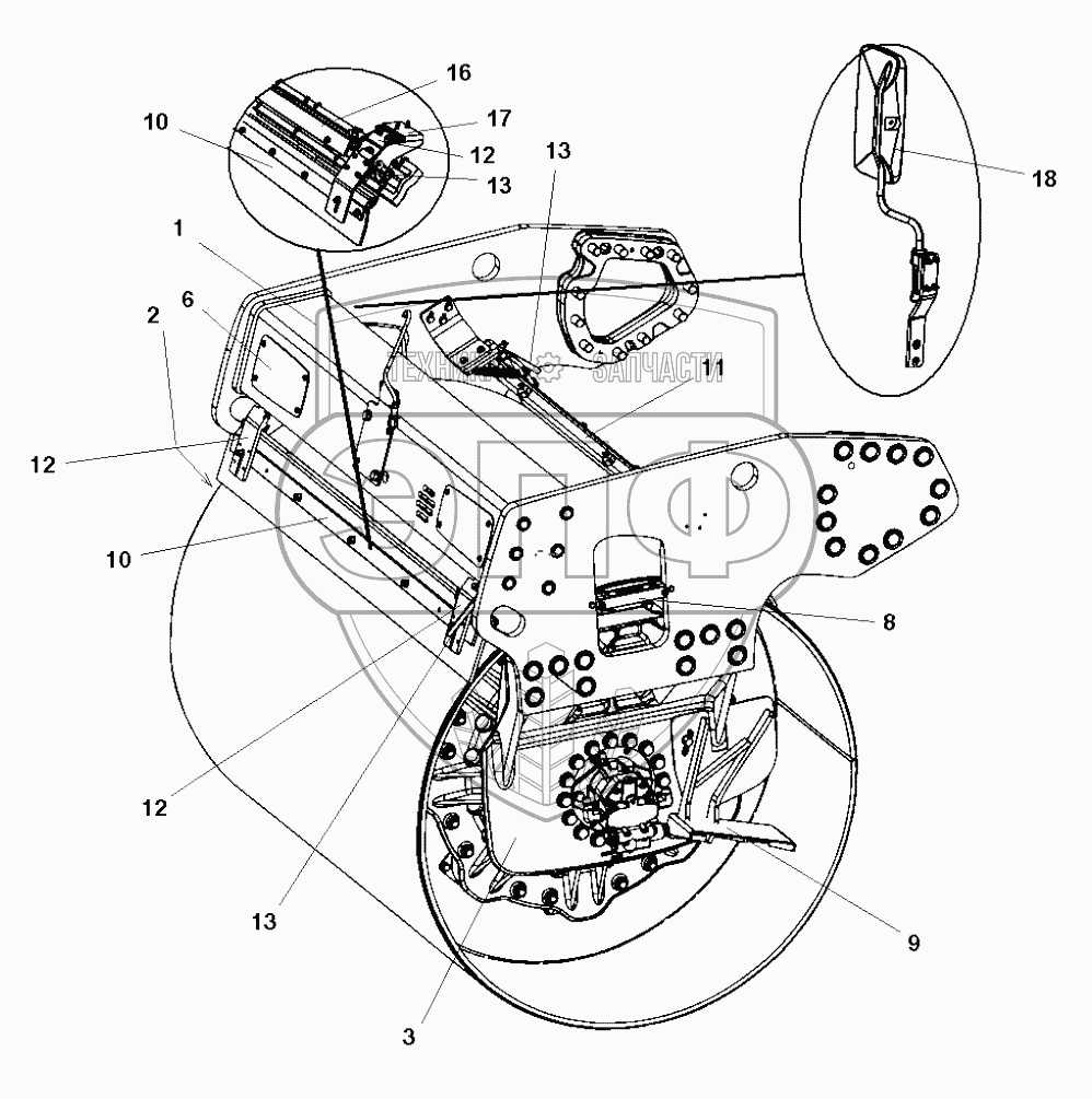 Каталог запасных частей к технике: DYNAPAC CC2200. End frame, front