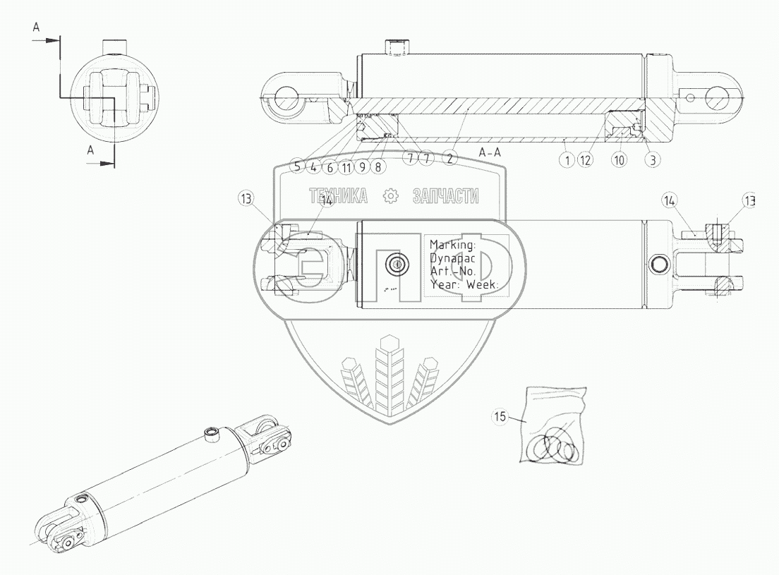 Каталог запасных частей к технике: DYNAPAC CC4200C VI. 4812123053 Hydraulic cylinder
