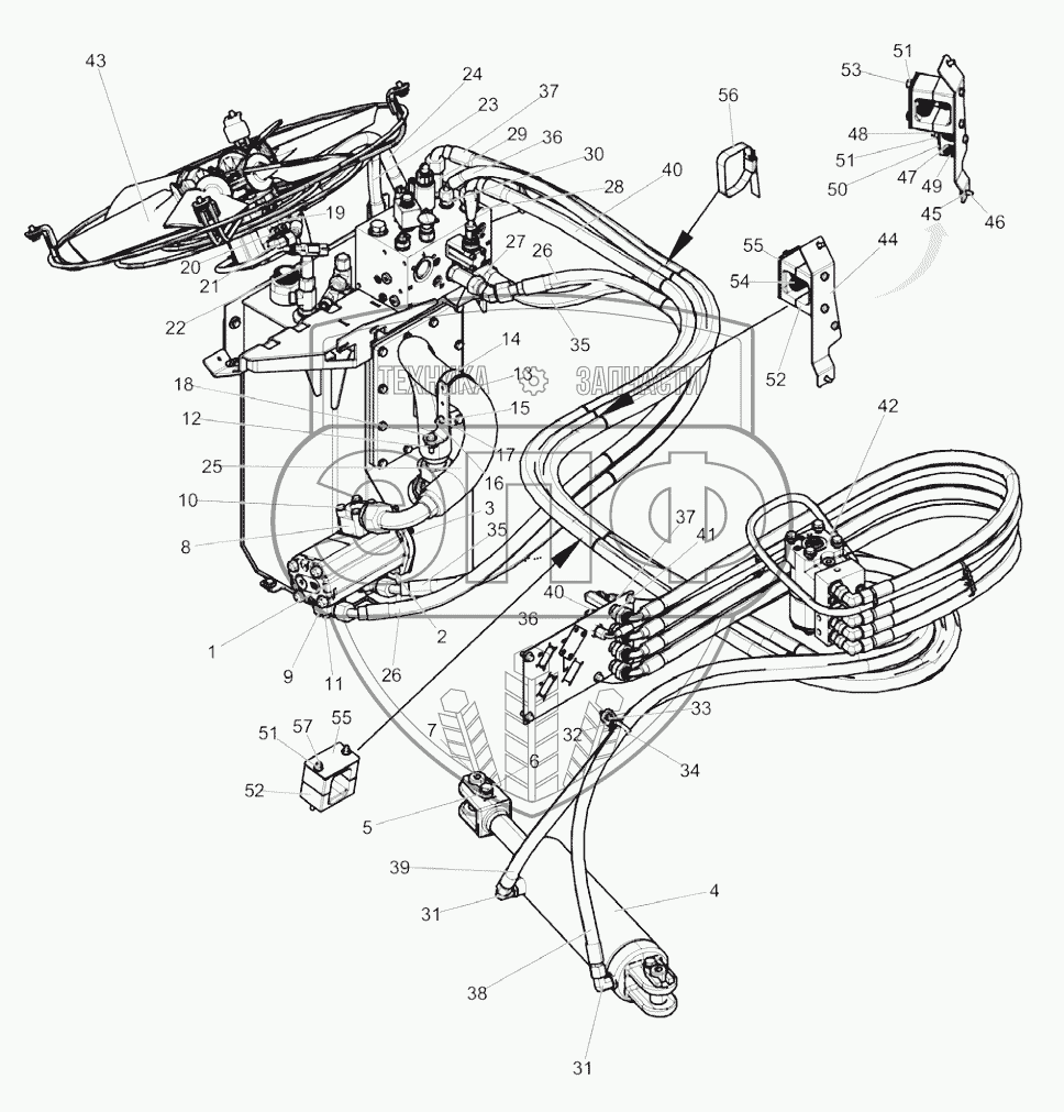 Каталог запасных частей к технике: DYNAPAC CC4200C VI. Hydraulic system, fan & steering