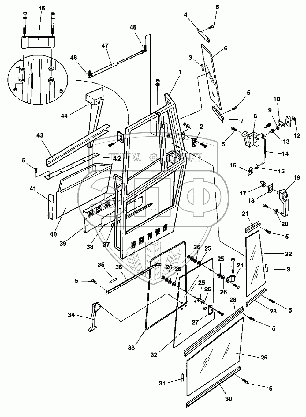 Каталог запасных частей к технике: DYNAPAC Dynapac CA302D. Cab Door (From 68X20852)