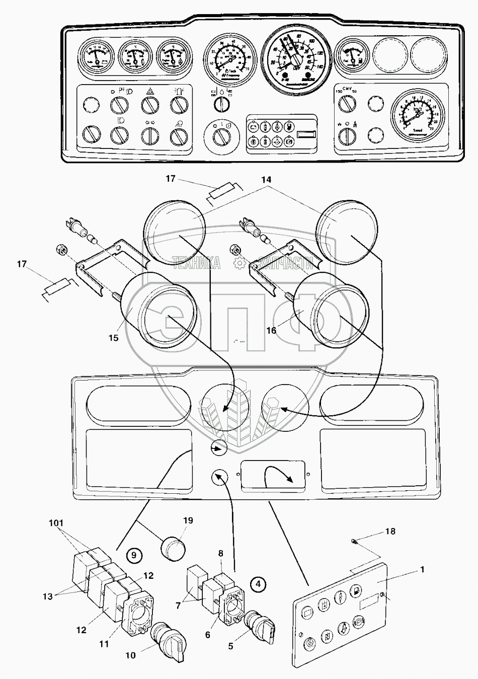 Каталог запасных частей к технике: DYNAPAC Dynapac CA302D. Instrument panel Main 17020