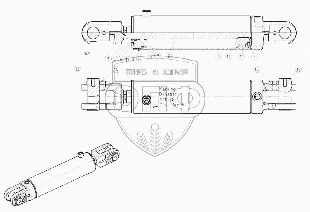 Каталог запасных частей к технике: DYNAPAC Dynapac CA5000D. 4812121947 Hydraulic cylinder