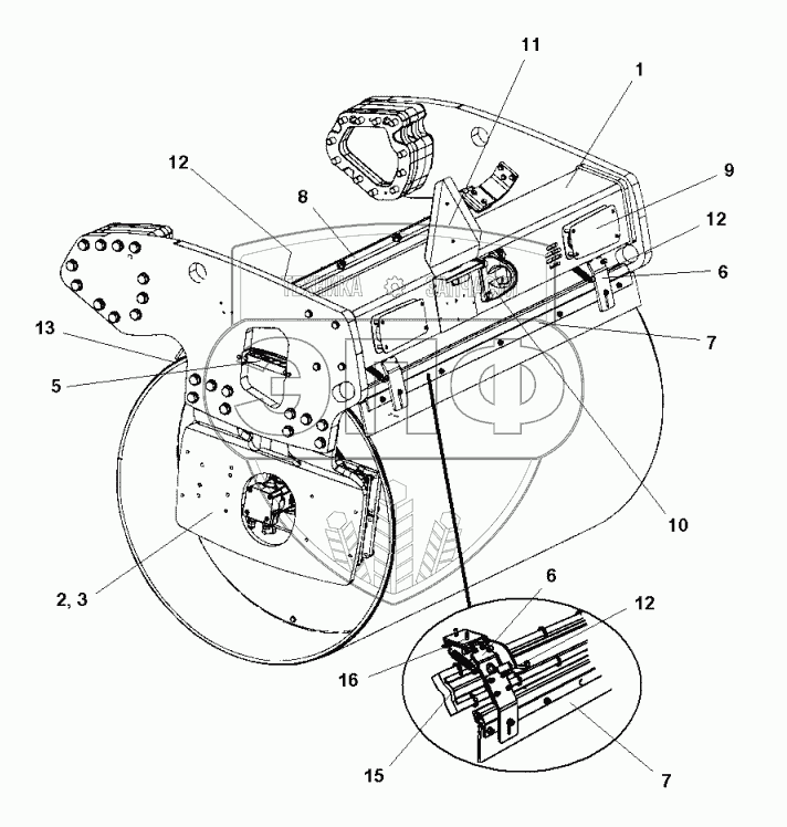 Каталог запасных частей к технике: DYNAPAC Dynapac CC224HF. End frame, rear CC224100100020
