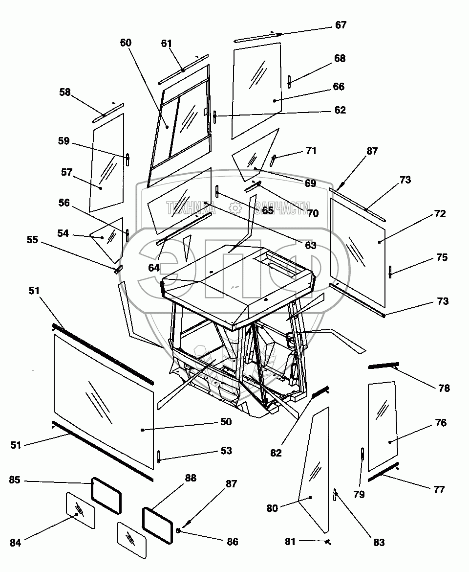 Каталог запасных частей к технике: DYNAPAC Dynapac CC322. Cab, screens
