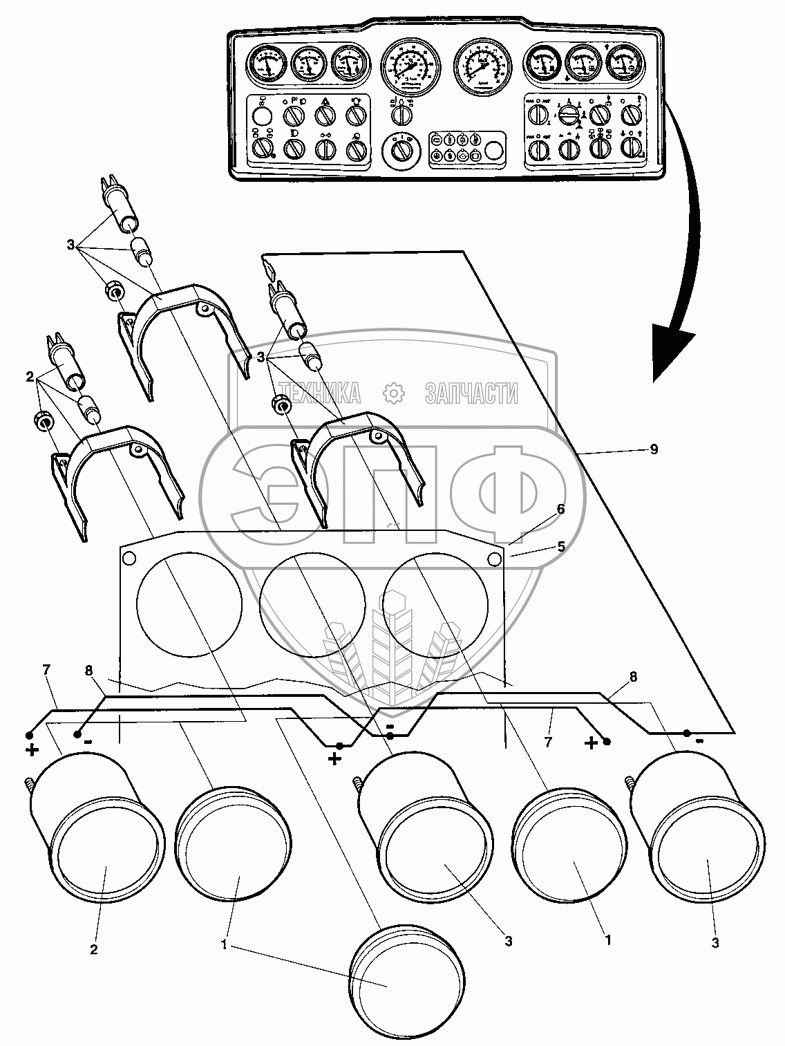 Каталог запасных частей к технике: DYNAPAC Dynapac CC322. Instrument panel Upper right
