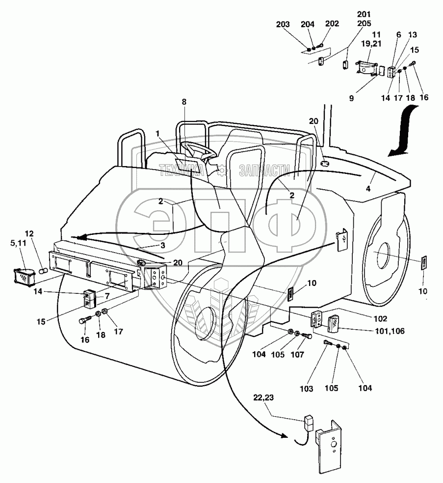 Каталог запасных частей к технике: DYNAPAC Dynapac CC422. Driving lights Direction & licenseplate light
