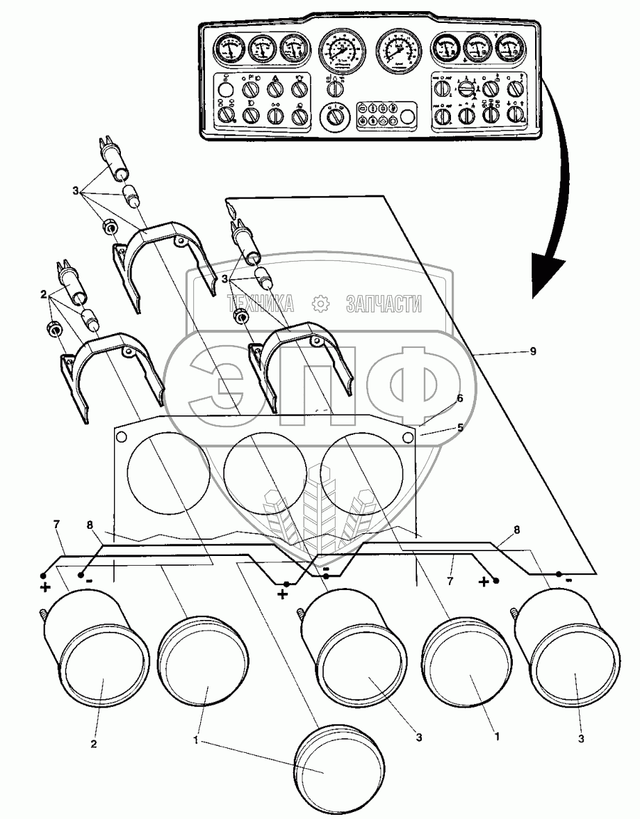 Каталог запасных частей к технике: DYNAPAC Dynapac CC422. Instrument panel, upper right