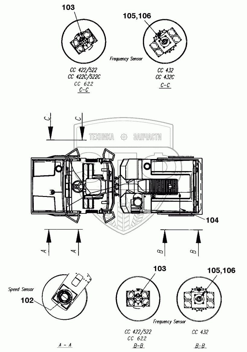 Каталог запасных частей к технике: DYNAPAC Dynapac CC422. Speed and frequency, sensors
