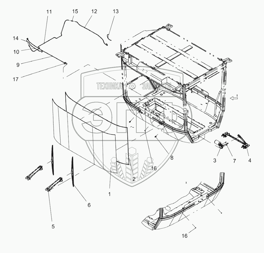 Каталог запасных частей к технике: DYNAPAC Dynapac CC5200 VI. Windscreen and wipers, front