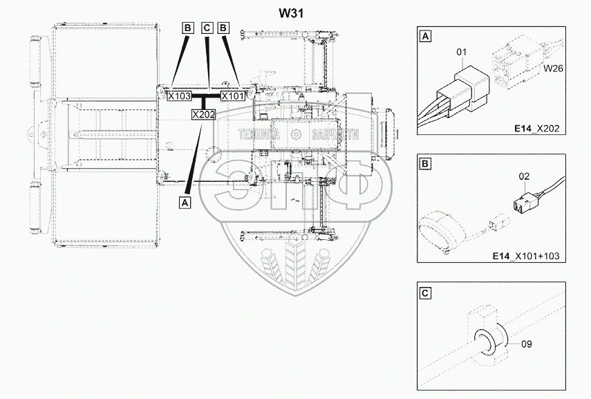 Каталог запасных частей к технике: DYNAPAC Dynapac F1200C/CS. 4812006294 Cable W31