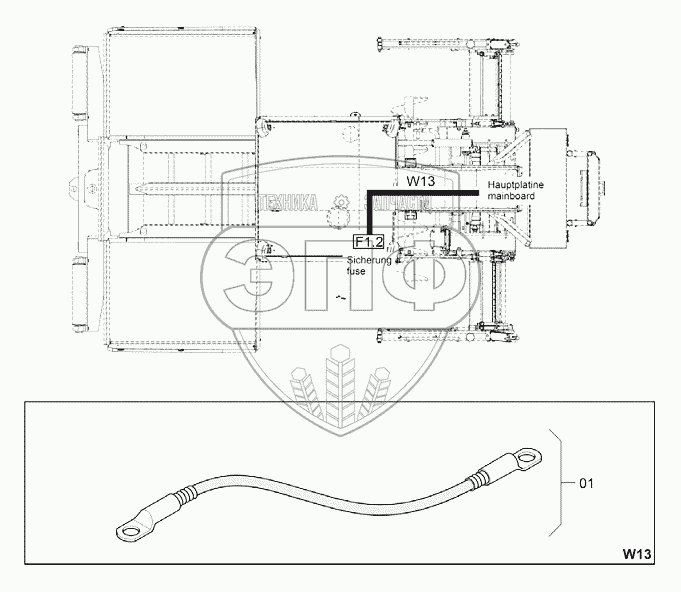 Каталог запасных частей к технике: DYNAPAC Dynapac F1200C/CS. 4812047531 Cable W13