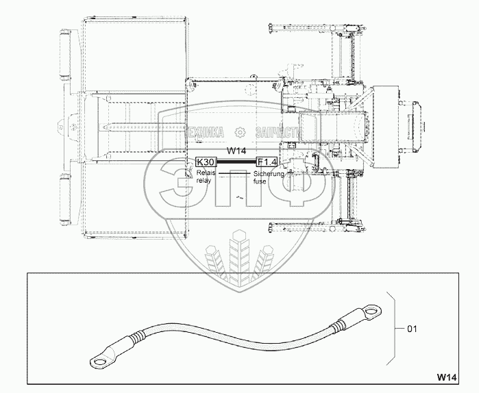 Каталог запасных частей к технике: DYNAPAC Dynapac F1200C/CS. 4812047532 Cable W14