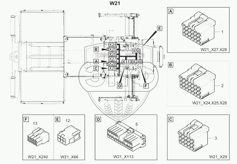 Каталог запасных частей к технике: DYNAPAC Dynapac F1200C/CS. 4812047535 Cable W21