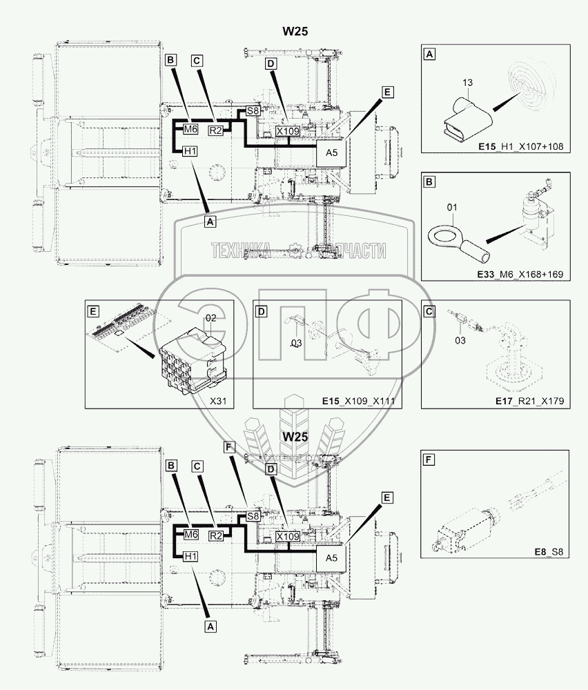 Каталог запасных частей к технике: DYNAPAC Dynapac F1200C/CS. 4812047537 Cable W25